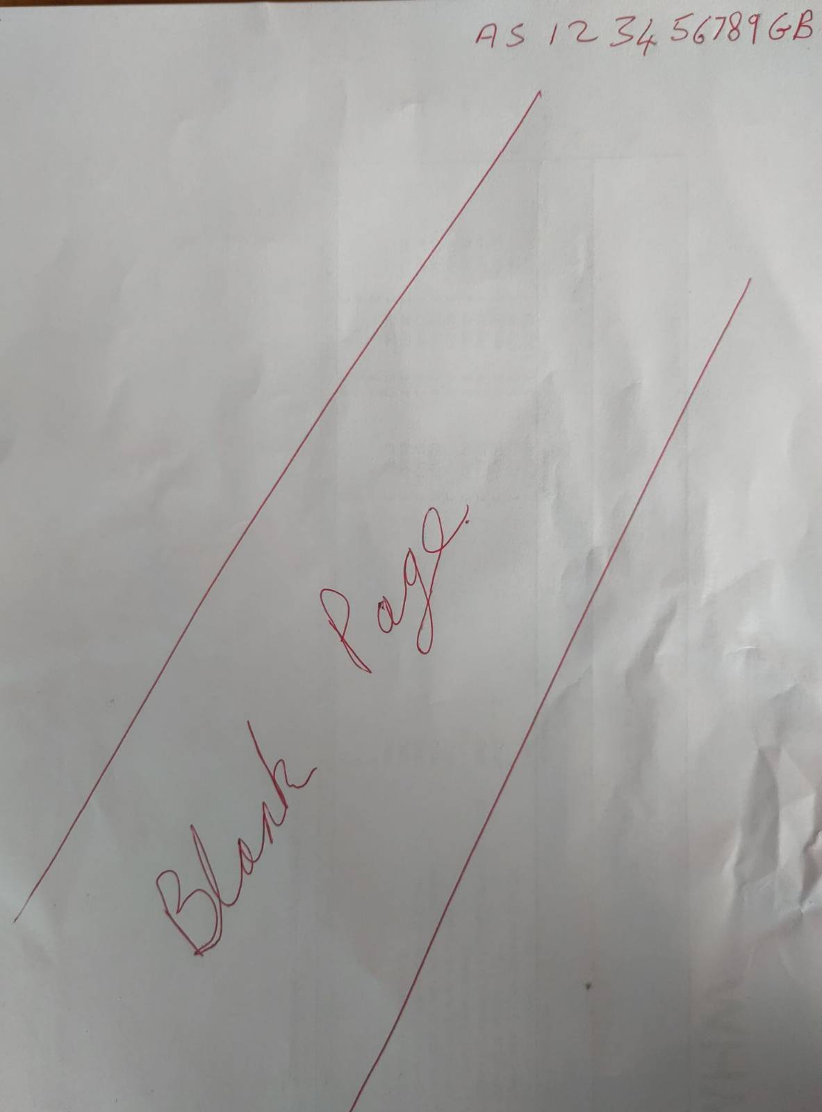 All blank pages ideally should be cancelled by putting the words 'blank page' (Ink colour as you prefer )