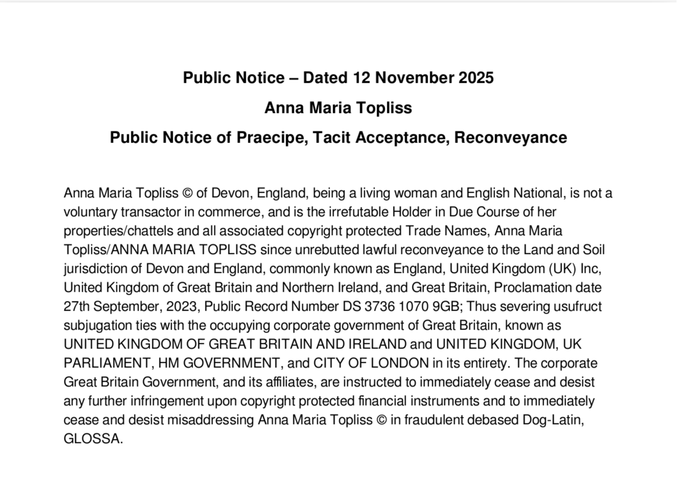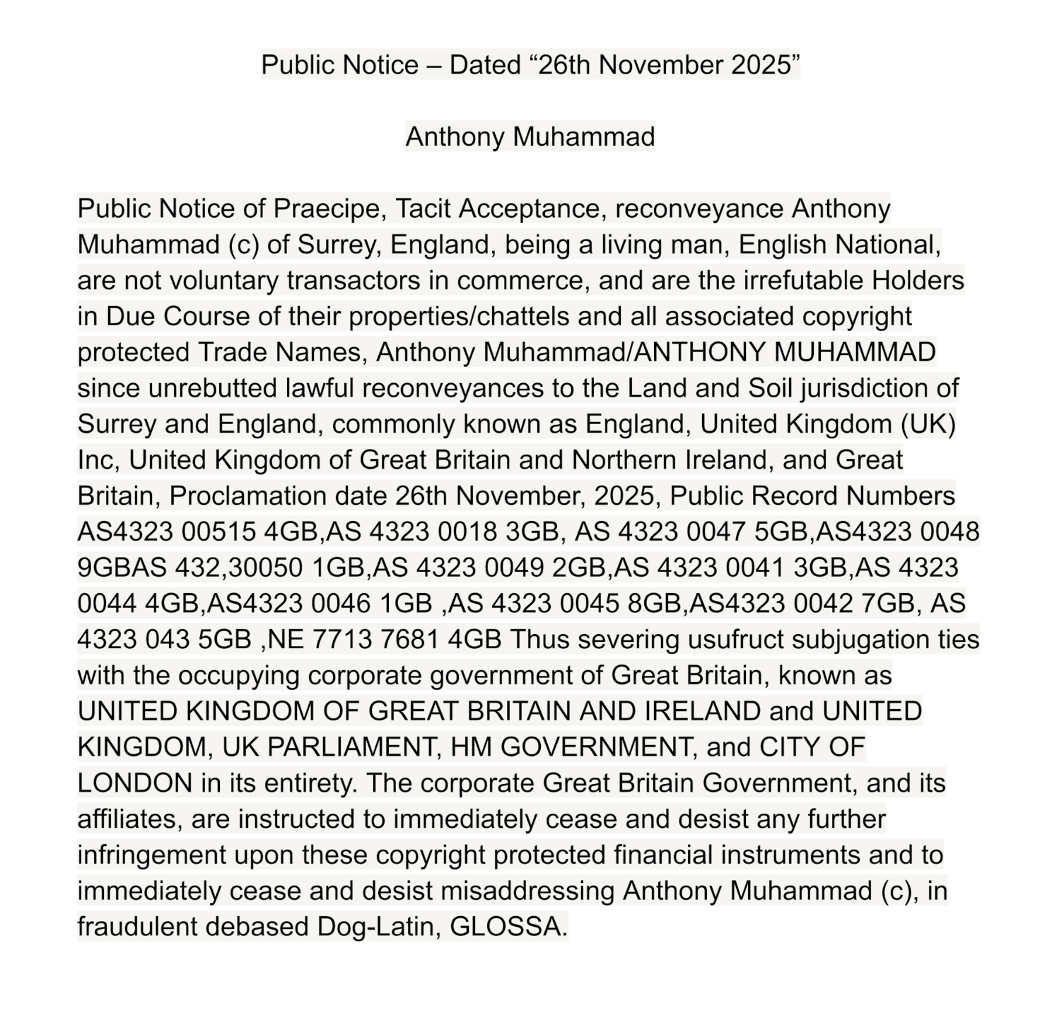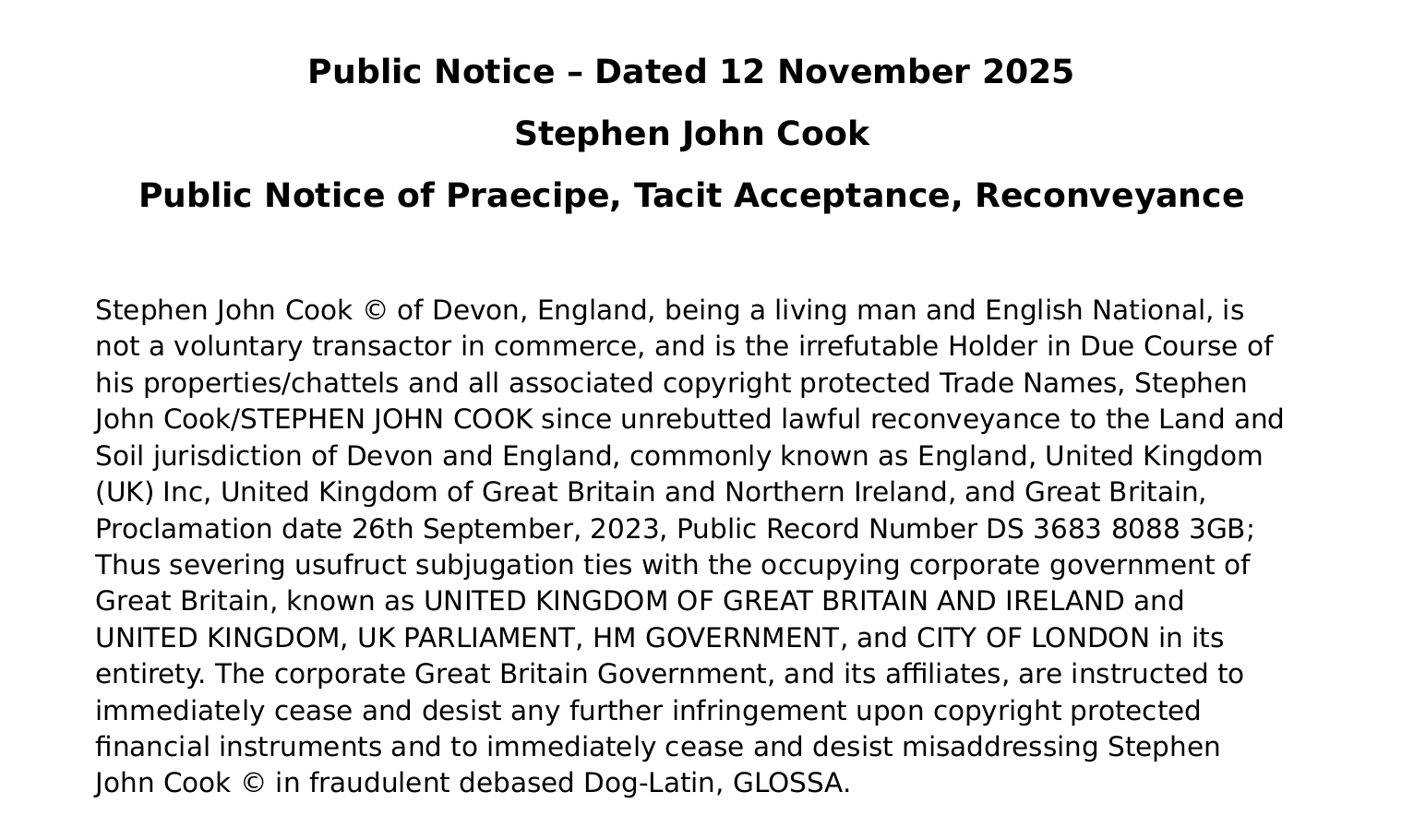 Public Notices of Praecipe